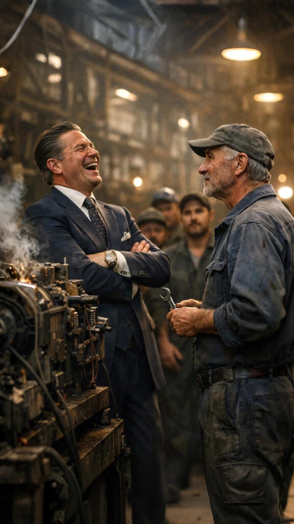 The owner of the factory stood there with his jacket open and his watch visible, irritation stamped across his face as if the delay itself were a personal insult. He hated interruptions. Even more, he hated being seen while things went wrong.